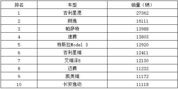 不仅是大众,日系与自主燃油车同样表现坚挺。广汽丰田凯美瑞以11172辆位列第九,在竞品环伺的中级车市场守住了尊严;奇瑞艾瑞泽8与吉利星瑞分别以12130辆和12411辆的成绩位居第六、第七,证明了优秀的自主燃油车依然有着强大的号召力;长安逸动也以11118辆守住了前十的门槛。