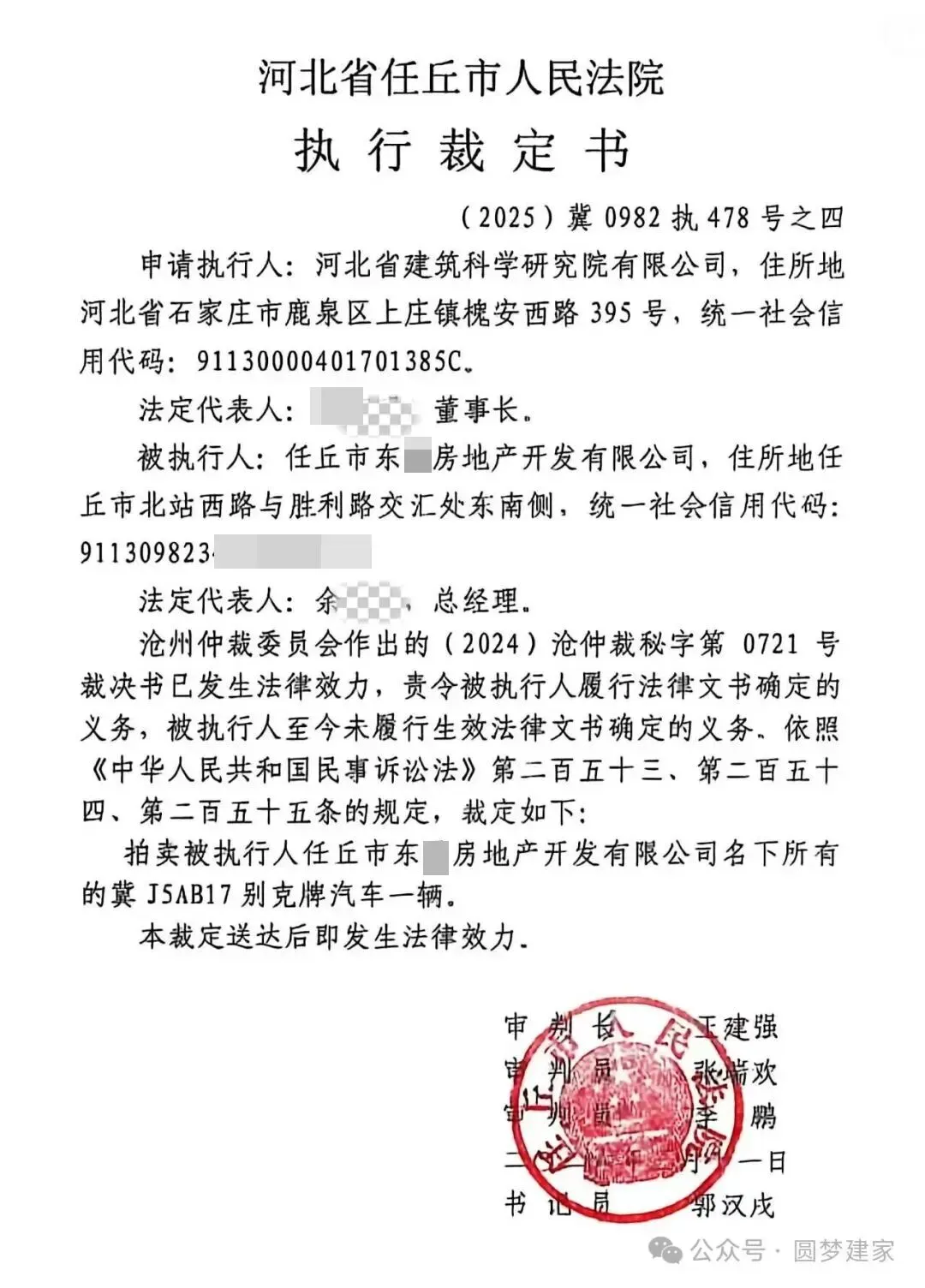 任丘某房地产开发公司名下的一辆别克牌轿车拍卖!