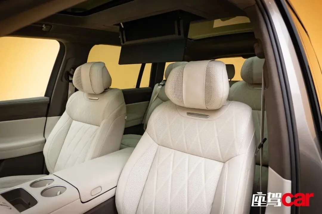 不仅如此,为了方便家庭使用,全车 40 处储物仓,拥有包括墨镜盒、中央扶手后侧纸巾盒、双层门板储物盒(带雨伞储物格)在内的丰富储物空间;实现“6 座平权”,每个座位均配备独立手机盒、USB 接口和杯托,细节考虑周全。人们关心的冰箱采用双向智能冷暖冰箱,座椅采用行业领先动态零重力座椅,“彩电”使用了九屏交互的智能座舱。