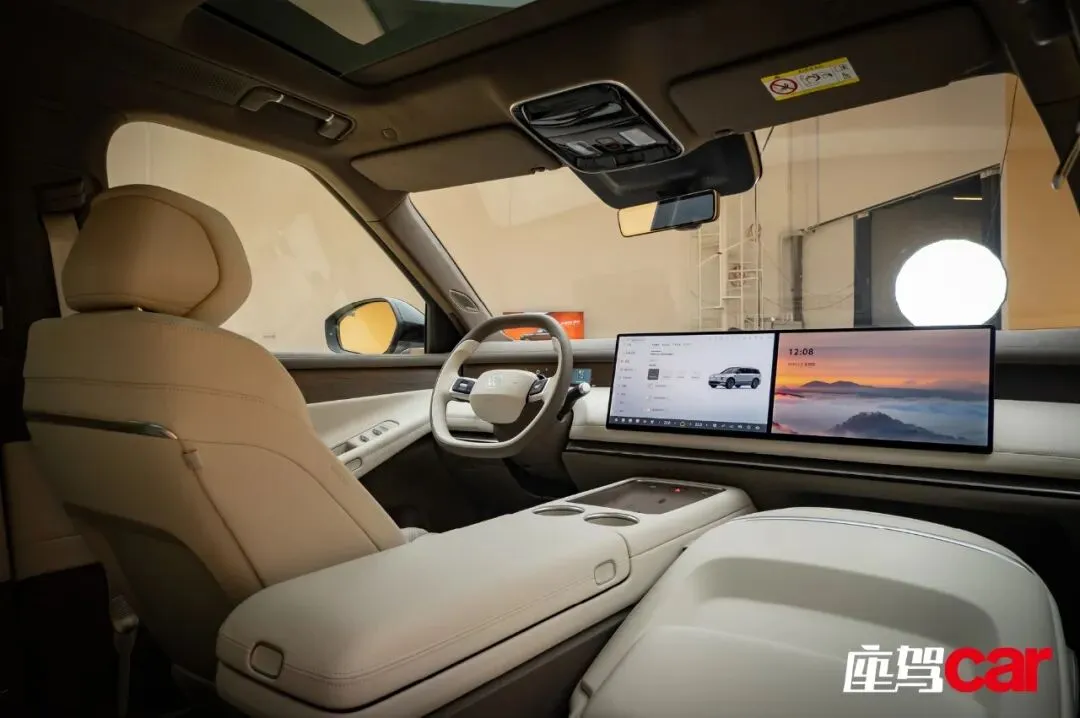 坐进车内,你会发现这是个有温度、够智能,能安心栖息的自然空间。整体采用家居化空间与智慧交互设计,营造通透环抱的移动客厅。对中控、门板进行立体解构与悬挑处理,释放实用空间,营造通透轻盈的视觉层次感。