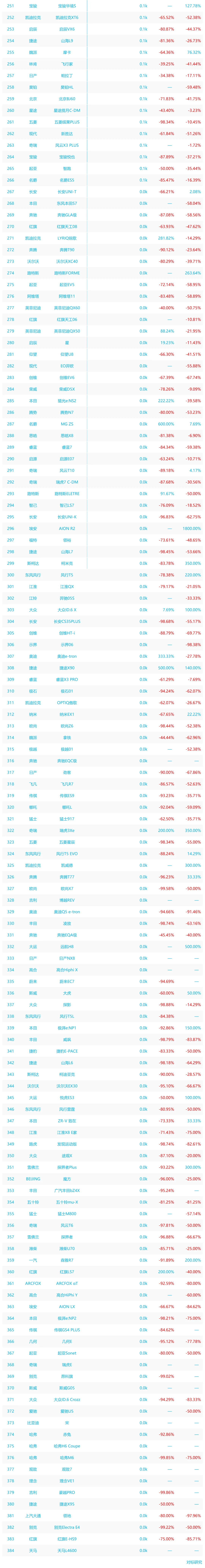 增长方面,市场分化特征显著。蔚来 ES8 同比暴涨 2773.11%,问界 M7 同比增长 74.58%,吉利博越同比增长 160.18%,北京 BJ40 同比增长 155.12%,成为增长主力;而比亚迪宋 Pro、理想 L6、比亚迪宋 L 等车型同比跌幅超 60%,部分车型环比跌幅也超过 40%,传统燃油及部分老款新能源车型面临较大下滑压力。