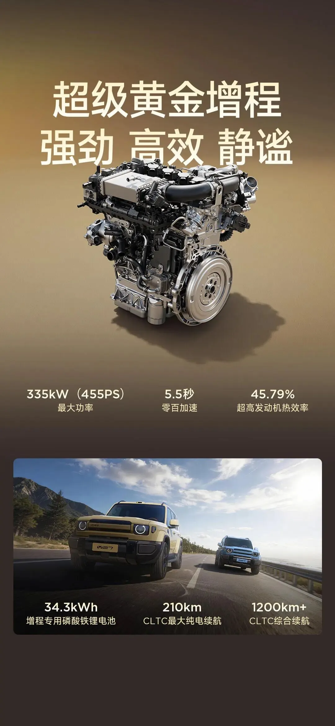 新车搭载奇瑞超级黄金增程,热效率45.79%的1.5T增程专用发动机获中国心十佳发动机,可实现1L油发3.71度电的极致效率。