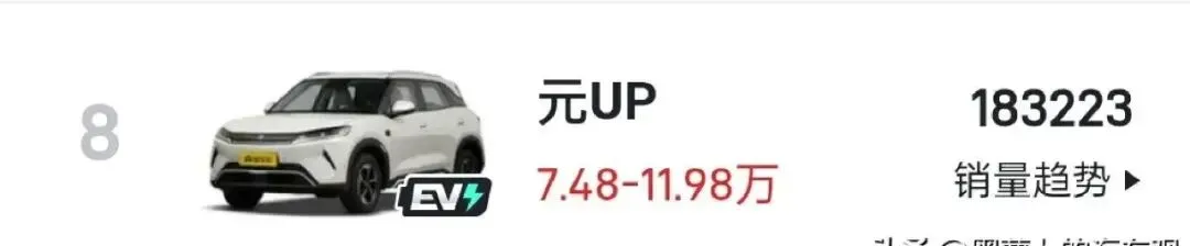 我这人吧,平时也爱琢磨车。刷朋友圈看多了“电车才是未来”,结果一查销量数据,差点把手机扔了。2025年2月到2026年2月,国内最畅销SUV前十名,新能源车只有三款:小米YU7、Model Y和元UP,剩下的全是燃油车。销量最猛的博越L卖了25万+,瑞虎8紧随其后17.8万,连探岳这种老大众都冲到17.6万。反观新能源的扛把子Model Y,销量43万,还是被燃油车群殴。