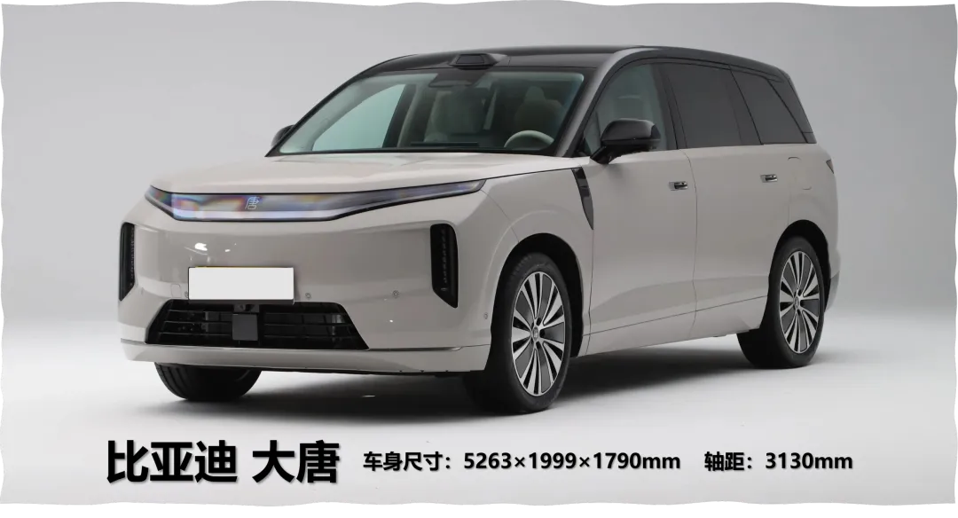比亚迪大唐定位面向家庭用户的大型SUV,车身尺寸5263×1999×1790mm,轴距3130mm,提供6座和7座两种布局。基于比亚迪超级e平台打造,搭载全域1000V高压架构和兆瓦闪充电池,最高充电功率可达1000kW。纯电版提供后驱单电机(300kW/370kW)及双电机四驱(前215kW+后370kW)版本,双电机版零百加速约3.9秒,总体而言,是一款不容忽视的性能之选。