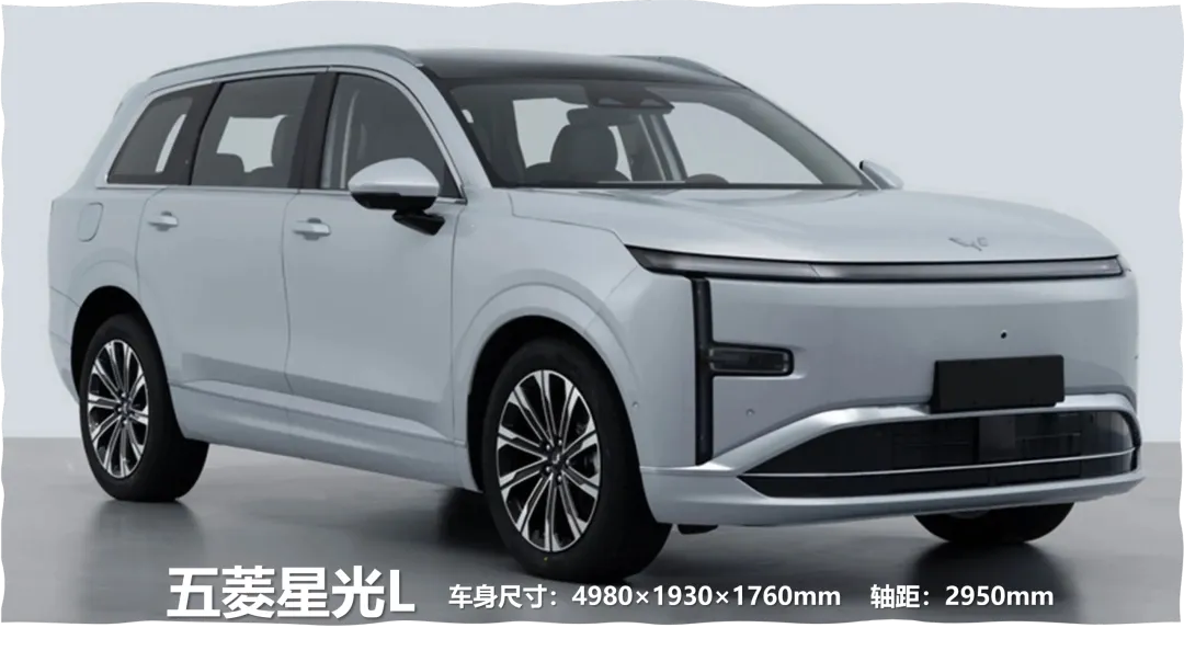 星光L是五菱品牌首款中大型SUV,外观设计上已经跳出了大家对五菱的既有认知。车身尺寸4980×1930×1760mm,轴距2950mm,提供5座和6座两种布局。搭载插电式混合动力系统,提供1.5L(78kW)和1.5T(105kW)两种发动机选择,配备31kWh和37.9kWh磷酸铁锂电池, CLTC最高可达280km。配备贯穿式前后车灯、传统门把手,预计主销价格区间12-15万元 。