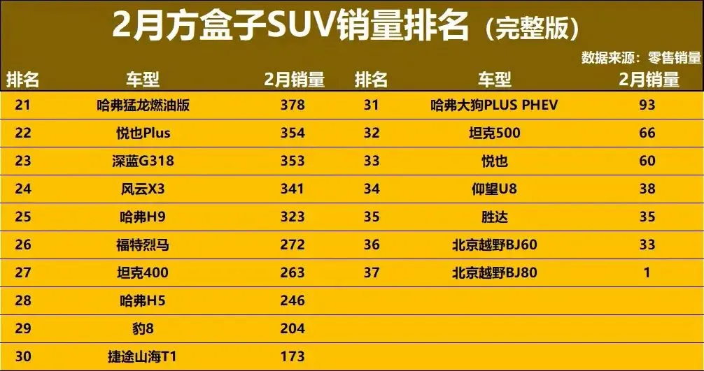 榜单20名开外的方盒子车型,则普遍进入了“生存考验期”。