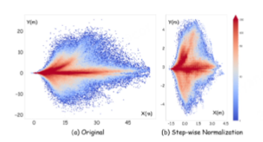 Step-wise Normliaztion效果图:统计Navtrain数据集的轨迹分布变化(来源:论文 Figure 3)