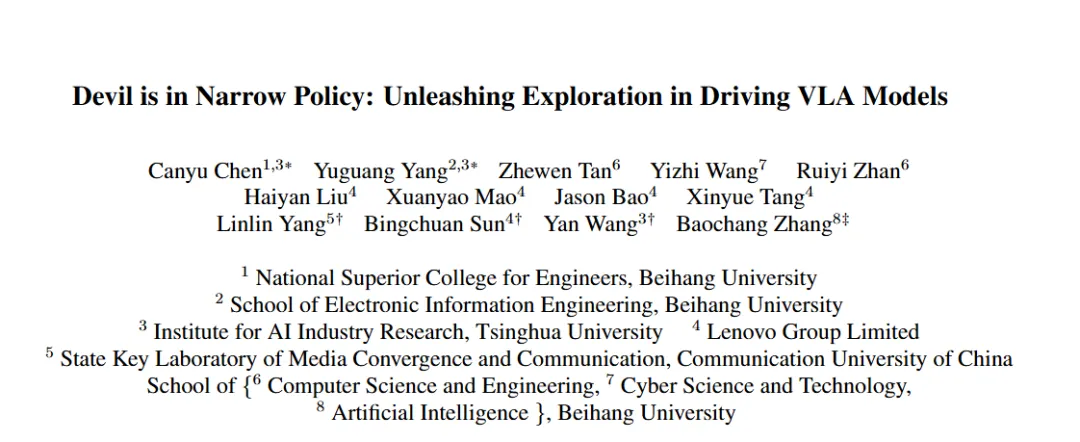 在论文《Devil is in Narrow Policy: Unleashing Exploration in Driving VLA Models》中,作者给出了一个非常关键的解释——问题不在强化学习本身,而在于策略已经在模仿学习阶段“塌缩”了。换句话说,当RL开始训练时,模型其实已经只会一种驾驶方式。