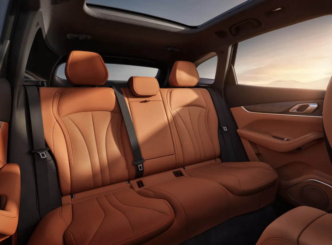 进入车内,吉利银河M7座舱采用了大面积米白色高档真皮材质的铺陈,中控台和门板四周还加入了黑色高级皮革交替混搭,还有亮黑色钢琴烤漆装饰面板,造型别致的空调出风口,操控岛区域还有实木装饰面板、手机无线充电和大尺寸旋钮,门板银质的门把手也十分精致。中控台配备了造型经典的三辐式多功能方向盘。科技感方面,车辆驾驶台区域弱化了仪表屏的面积,配备HUD和大尺寸中控屏,其中大屏贯穿至副驾驶前方,车内配备了5个真皮沙发座椅,前排座椅采用头枕椅身一体式的设计,看上去具有不错的运动属性。后排配备有空调出风口,后排座椅支持4:6比例放倒功能。整体内饰的颜色和设计搭配让新车看上去年轻时尚。还将会提供Flyme Auto车机系统、Flyme Sound 23扬声器、多色车内氛围灯等配置。