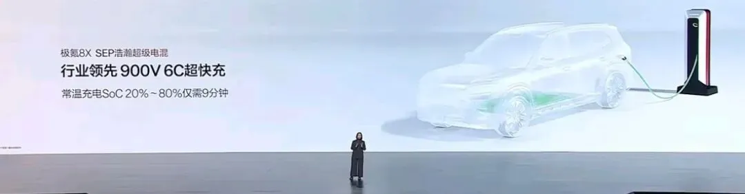动力与续航方面,极氪8X搭载全栈900V高压混动架构,配备2.0T超级电混专用发动机、高功率P1发电机及双电机或三电机组合。