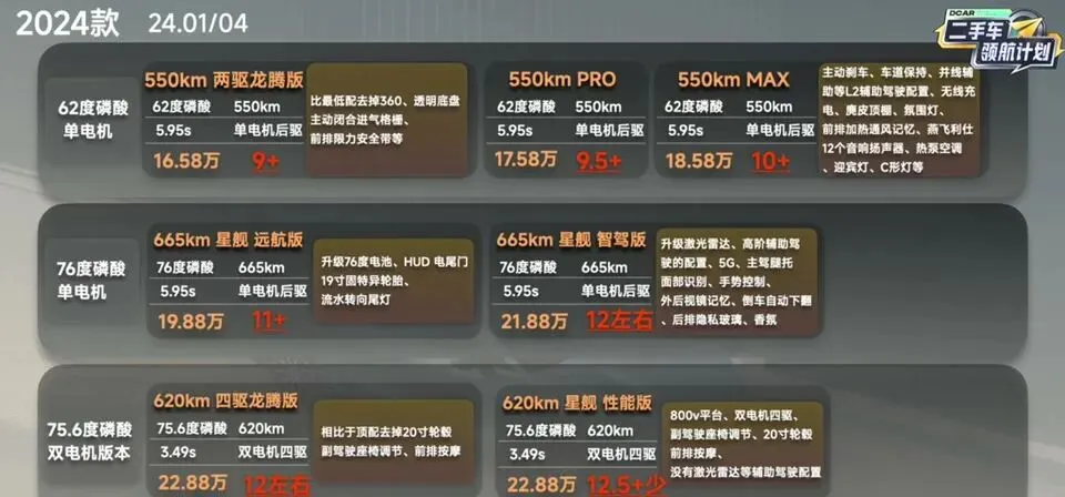 24年4月份又推出了两个龙腾版,一个550龙腾版售价更低配置也更低,还有个四驱版本相比顶配去掉了一些配置。