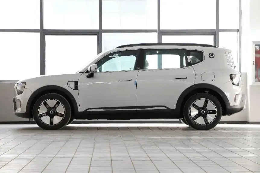 smart精灵#5 EHD超级电混的外形,整体延续了纯电版“时空胶囊”的设计语言,由梅赛德斯-奔驰全球设计团队主导,在新能源中型SUV里属于比较有辨识度的一类。前脸采用封闭式格栅,配合贯穿式LED大灯和胶囊状日行灯,视觉上既有科技感,又不失稳重。车身侧面线条平直、车顶平缓,配合隐藏式门把手和19英寸轮毂,风阻系数控制得不错,兼顾了空间和空气动力学。车尾贯穿式尾灯与车头呼应,后包围采用枪灰色饰板,排气隐藏处理,整体风格简洁、饱满,夜间点亮后的辨识度比较高。