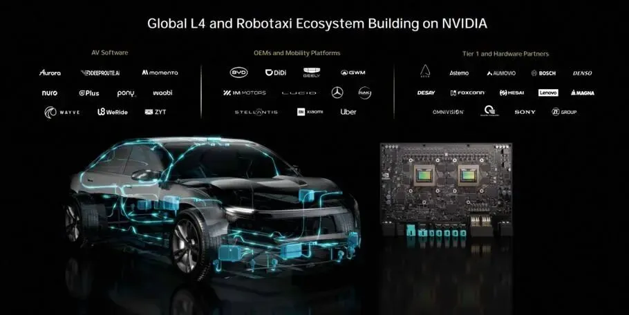 在美国加州圣何塞举行的2026年GTC大会上,英伟达宣布将自动驾驶汽车开发业务合作拓展至现代汽车、日产汽车、五十铃汽车,以及中国车企比亚迪与吉利。