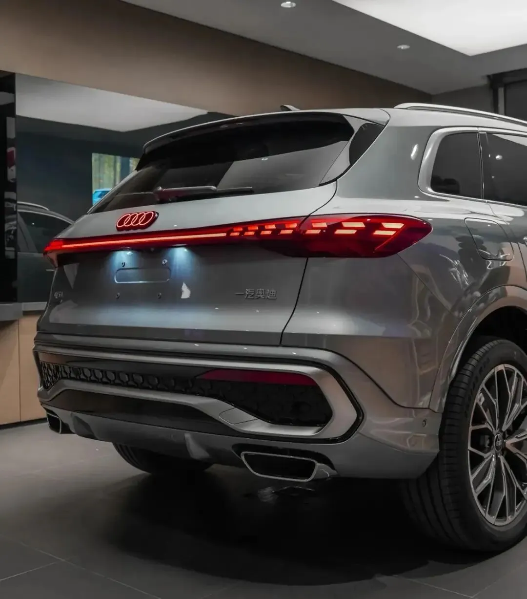 外观延续奥迪家族经典设计,精致与运动感同步提升。新车提供动感型与致雅型双前脸风格,动感版采用熏黑蜂窝格栅,致雅版以多横幅镀铬营造稳重气场,满足不同用户审美。车身尺寸4770mm×1893mm×1667mm,轴距长达2907mm,侧面线条舒展流畅,隐藏式门把手优化风阻,19-20英寸铝合金轮毂提升气场。车尾贯穿式镀铬饰条连接LED尾灯,双边共两出排气装饰与扩散器造型,简约大气且辨识度突出,豪华感与实用性兼顾。