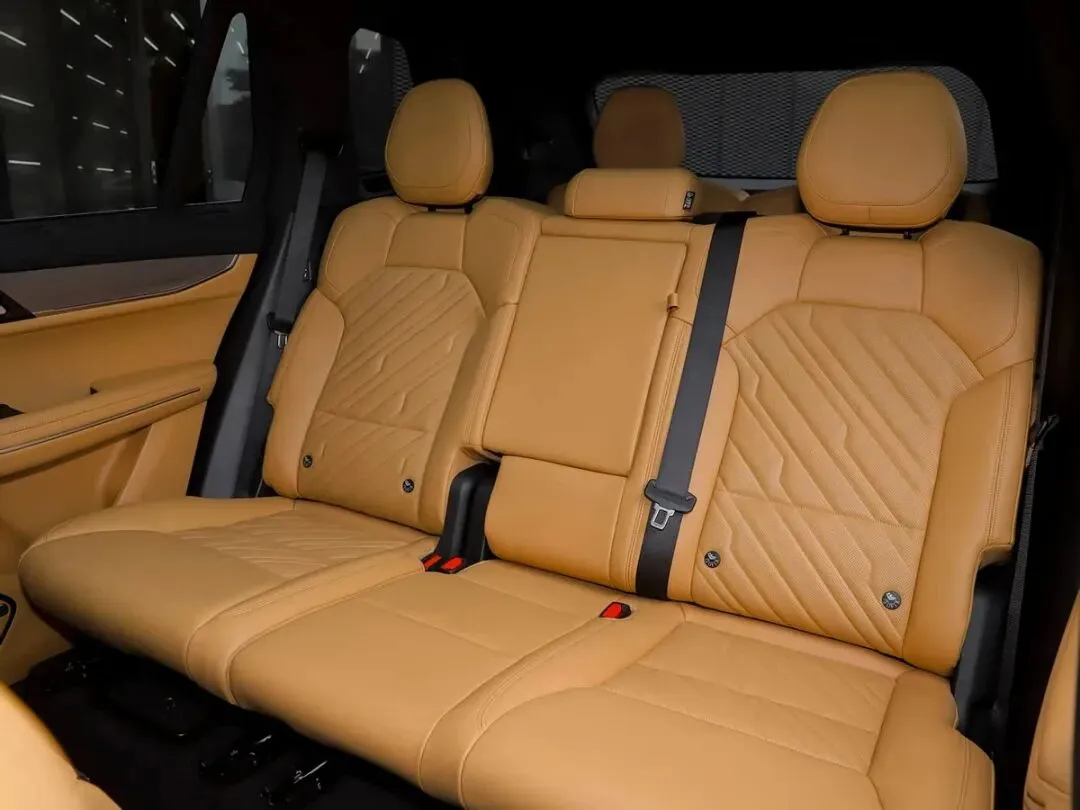 这车的安全配置没偏科,每个座位都照顾到了。副驾装的是狐首型安全气囊,比普通气囊包裹性好太多;侧气帘更是从车头 A 柱一直覆盖到车尾 D 柱,长达 2550mm,50 毫秒内就能弹出来,连第三排乘客都能护住。