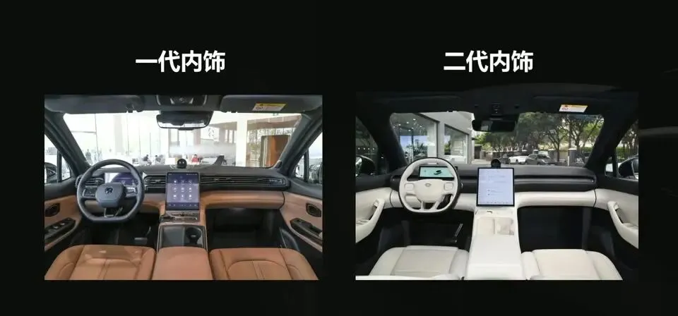 再说内饰。ES6一代屏幕之类的有些过时,但是小细节设计很好,NOMI也让内装更有意思,整体的氛围符合豪华车的定位。二代整体更极简豪华,氛围也非常好,没有追求过多的屏幕,但是比那种光秃秃的极简要好得多。