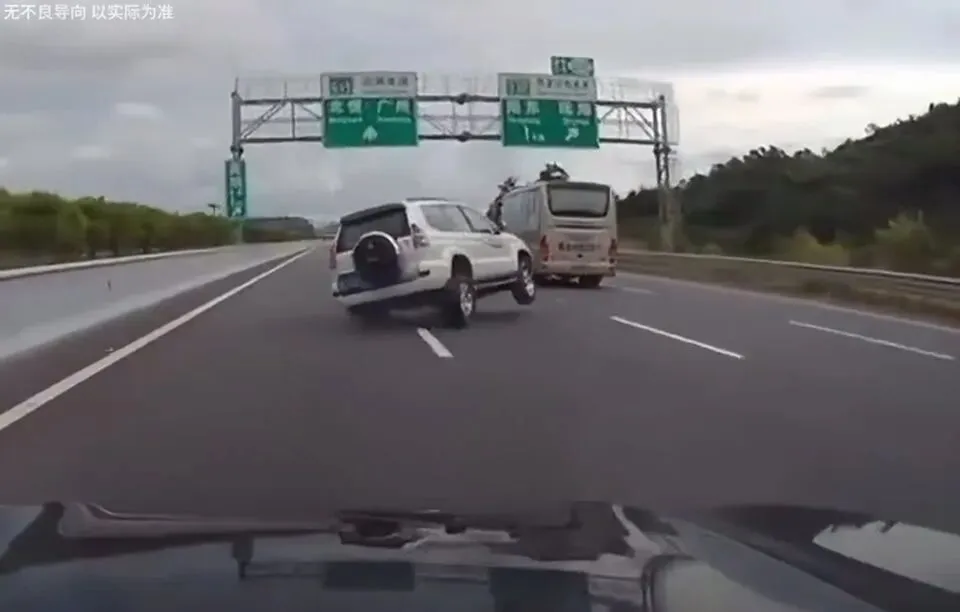 展示SUV在高速上翻车