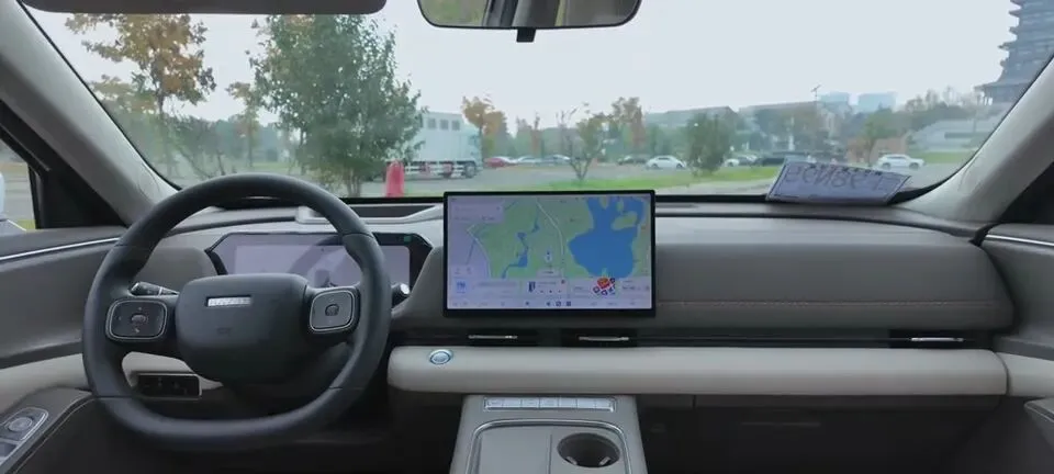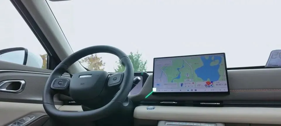 大尺寸悬浮屏本身就是视觉焦点,屏幕位置突出,操作区域集中,科技感主要由它承担。