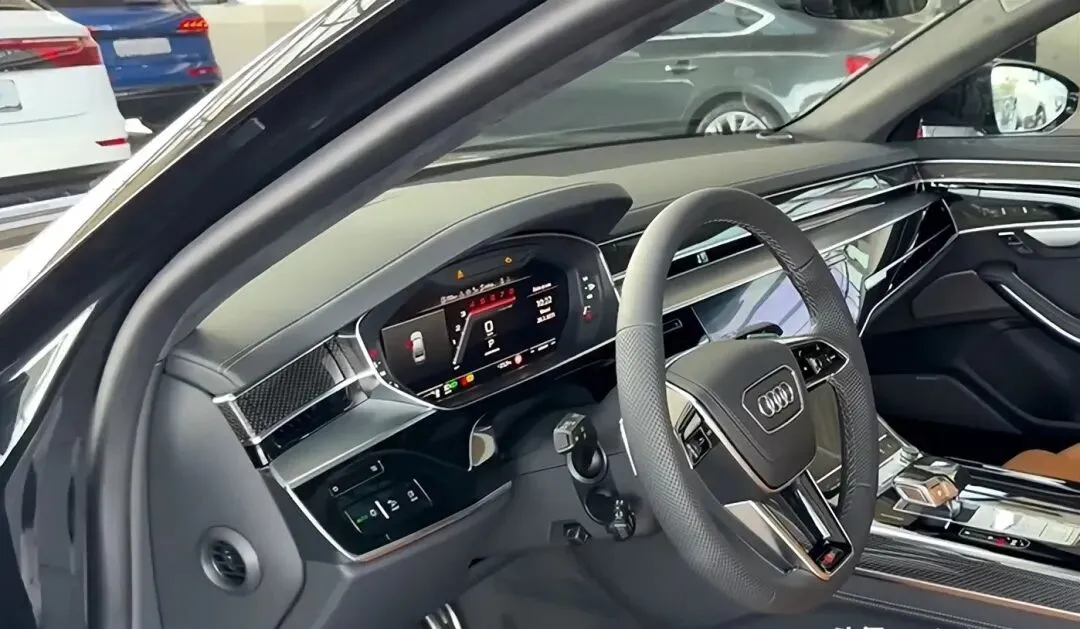 这车真没啥好讲外观的。前脸就比A8L多了两根镀铬条,轮毂上印了个S,后备箱盖右下角贴着“S8L”三个小字,不凑近根本看不见。我问销售:“这车能认出来吗?”他笑了:“认识的人一眼就认出来了,不认识的,你停他旁边他都懒得抬眼。”它不像RS6那样凶,也不像DBX707那样浮——它就是一堵会动的黑色玻璃墙,安静,厚实,不抢话。
