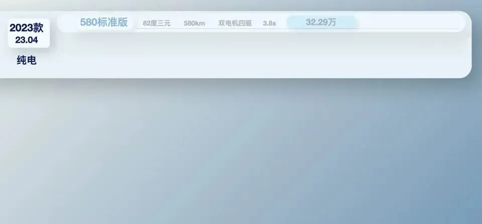 追光上市之后没改过款,纯电版本是23款,插混版是24款。这里重点说一下——纯电版23年4月上市,刚开始三个版本,上市两个月之后就将选配全部赠送并降了价,也就是说6月之后的纯电车型都是满配的。