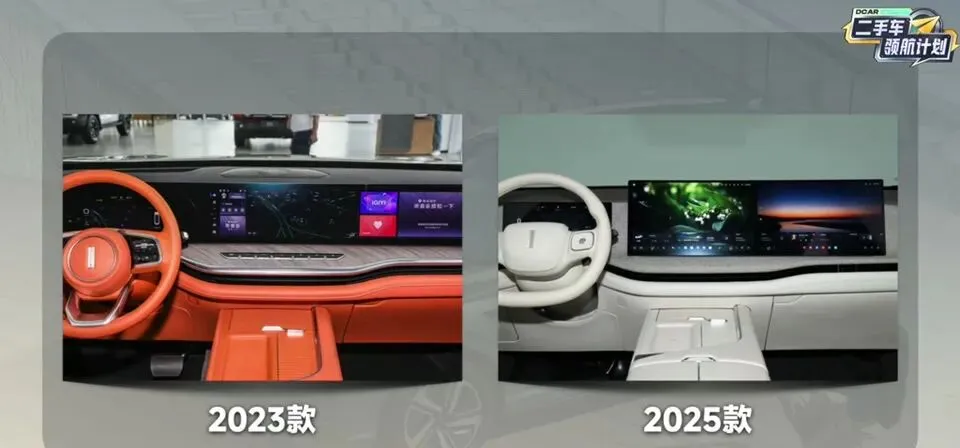 老款蓝山也是按照理想ONE的样子制作的,新款内饰换成了大屏幕,车机芯片从8155变成了8295,还有新系统加持,这个体验还是要好很多的。说白了,25款就是一个大换代——冰箱彩电大沙发,新系统新动力总成,其他用料方面变化不大。