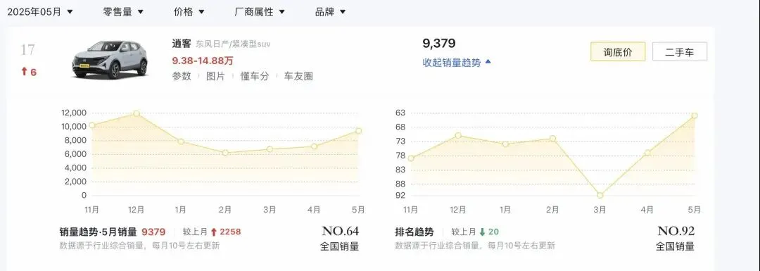 日产逍客这个车我印象还挺深刻的,当年刚上市的时候确实挺火的。现在改款后的价格确实挺有诚意,9万多就能买到,性价比不错。而且后悬挂是独立的,这一点比卡罗拉锐放良心。