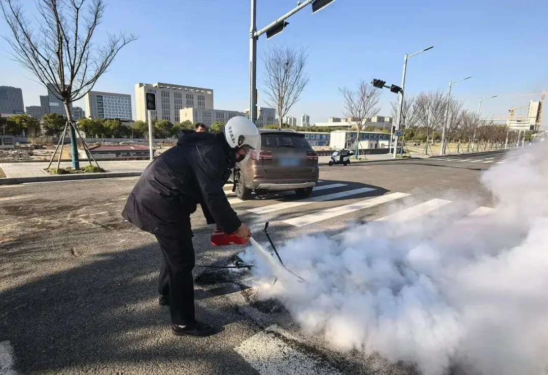 事发当日,科教新城综安办队员像往常一样开展日常街面巡查,行至路口时,突然发现一辆小轿车车身蹿出明火,火势有快速扩大趋势,危急关头,队员们没有丝毫犹豫,立即分工协作、默契配合,一边火速前往就近物业点位,第一时间借来灭火器开展灭火作业;一边合力协助车主,将起火车辆平稳推离路口,转移至空旷安全区域,切断火势蔓延路径,最大限度降低险情危害。