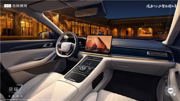 动力部分,银河星耀7搭载插混动力,配备e-AWD智电四驱系统,综合功率为312千瓦,峰值扭矩526牛·米,零百加速时间为5.4秒。