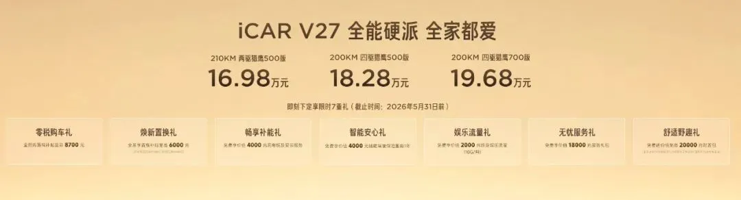 要知道钛7几乎就是20万级方盒子的标杆,目前的插混销冠,但V27这16.98万的价格一出来,情况就变了。V27这个起步价。直接就比钛7省出了一台顶配iPhone。