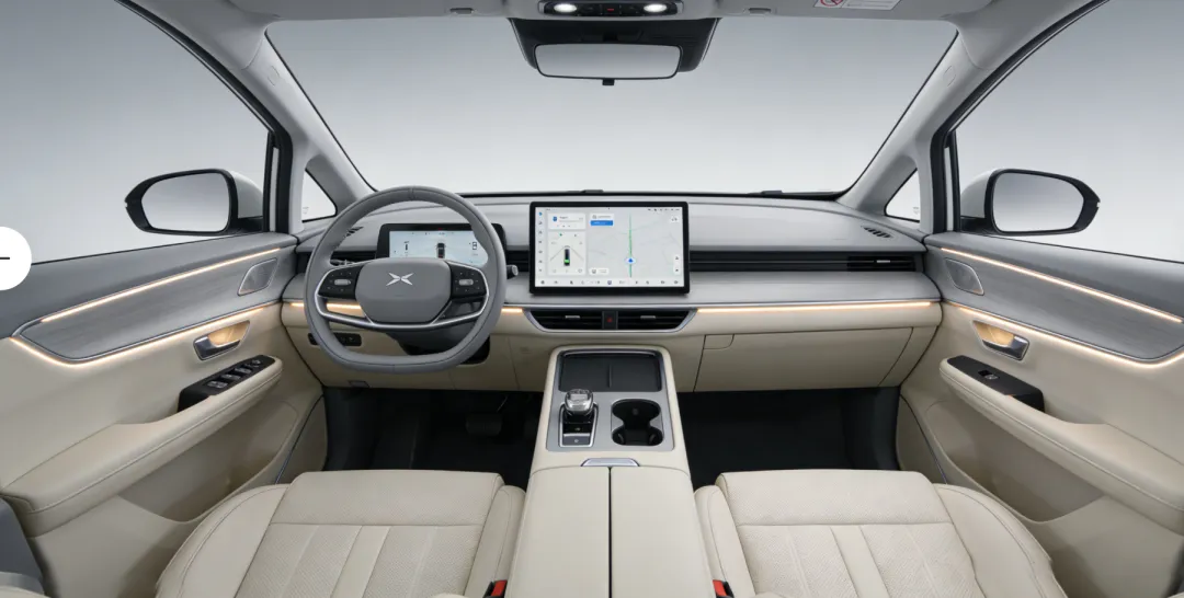 你看它这个侧面,悬.浮式车顶,隐藏.门把手,然后那个.平直的腰线,一条拉到底,很干净。我.个人是比较.喜欢这种.克制一.点的设计,不花里胡哨。但是前脸还是.小鹏家族那一套.贯.穿灯带,说实话,有点熟悉到没新鲜感了。明明可以在.旗.舰上再突破一.点,对吧?不过气场是有的,停在.那.儿就.是一个大.块头。
