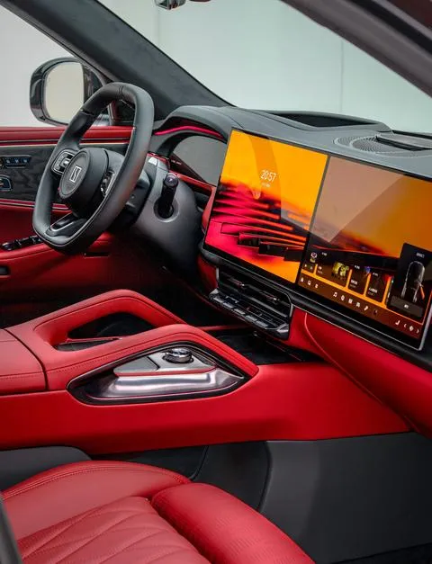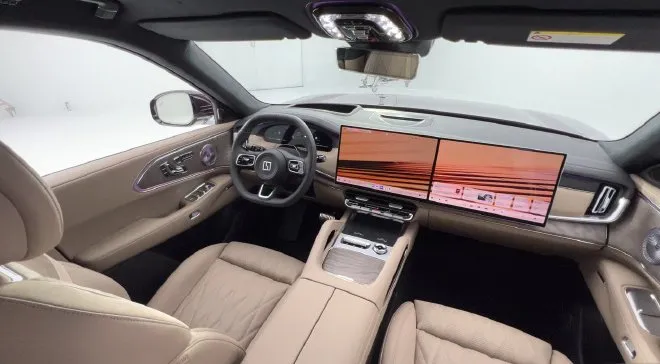 三大屏幕系统:17英寸OLED真彩吸顶屏(3K分辨率)、16英寸前排双联屏(双8295芯片)、44英寸AR-HUD抬头显示。