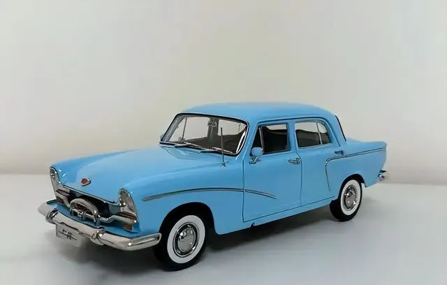 这个浅蓝色的实力选手叫上海760,本地仿制的骄傲,前脸圆滚滚的,银框镶边,六缸发动机顶着,怀档设计,方向盘上的灯和喇叭都是合在一起的,小时候队长就是坐这车出门的,咱小孩远远看着,心底偷偷记了这个样子。