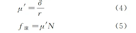 将式( 3 )中的 δ/r 称作滚动阻力因数,记作 μ′ ,于是又有