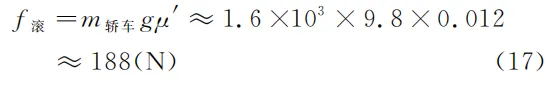 假设轿车的质量 m轿车=1.6×10³kg(空载) ,发动机的有效输出功率 P有效=100kW (此处为额定功率,下同),重力加速度 g=9.8m/s2 ,同时为了简化起见,假设轮胎与路面之间的滚动阻力因数 μ′≈0.012[7] ,于是, 4 个轮胎受到的总的“滚动摩擦力”为