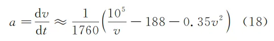 从图 6 中可见,只有当轿车的车速 v<5m/s 时,才能忽略风阻 F风阻 而只考虑来自路面的“滚动摩擦力” f滚 。因此,忽略风阻时的动力学方程