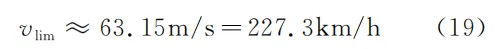 由此所计算出的本文空载轿车在 P有效=100kW 下的极限速率约为 65.86m/s ,相对于上文式( 19 )的准确值 63.15m/s ,误差仅为 +4.3% 。当然,这些结论是在 P有效=100kW 的前提下获得的,倘若 P有效 远小于 100kW ,则 vlim 将显著地小于 63.15m/s ,此时即使轿车达到极限速率匀速行驶,“滚动摩擦力” m轿车gμ′ 也不能被忽略,即式( 22 )不能成立。