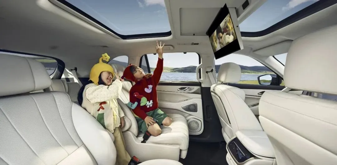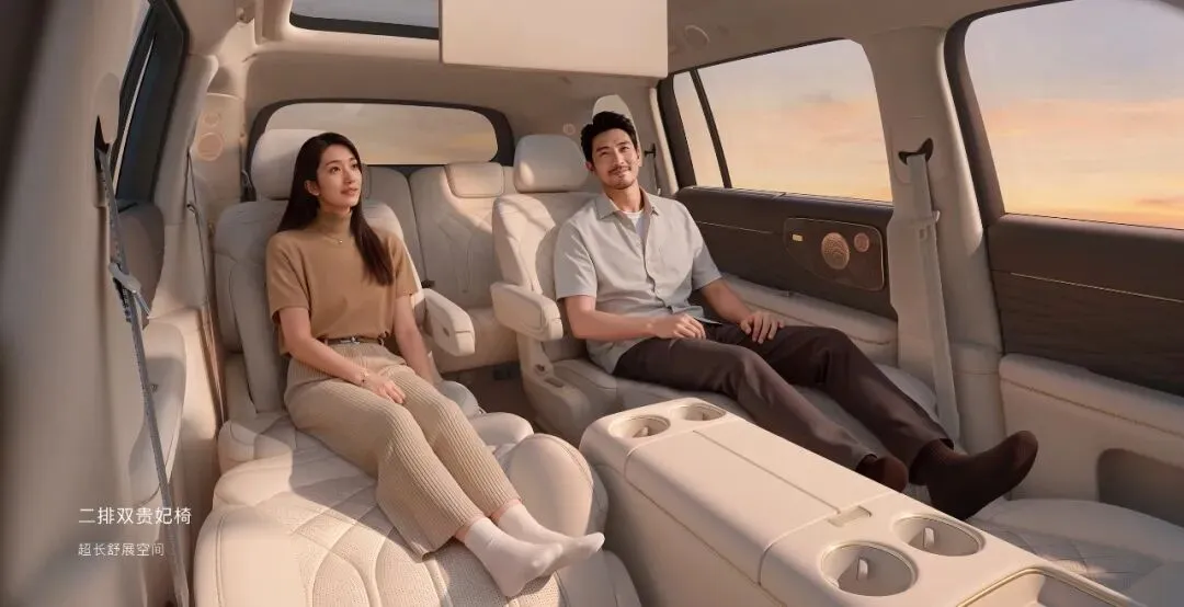 5.2米的车长配上3米轴距,大六座布局拿出了88.3%的得房率,后排空间够舒展,就算是185cm的成年人坐第三排也不会憋屈。空气悬架、冰箱、后排娱乐屏这些高端配置,它都没落下,和那些三十万级的车型比,配置清单差不了多少。