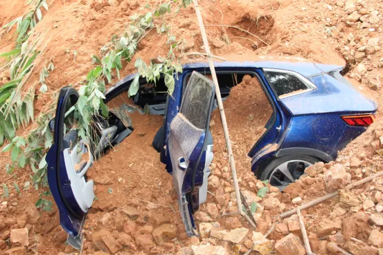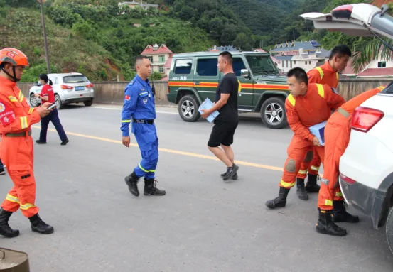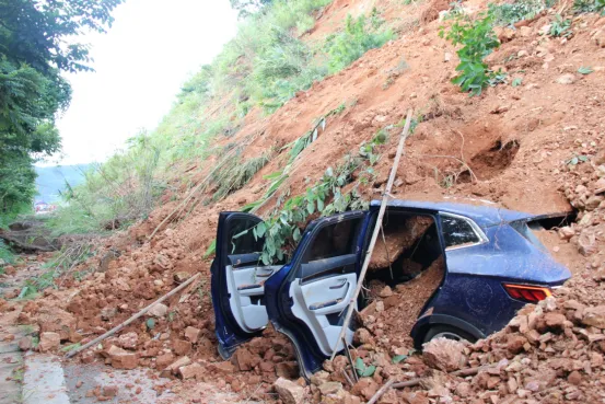 险情发生后,救援队伍快速到达现场。经查看,塌方现场路面被大量碎石泥土覆盖,一车辆被掩埋。塌方的落石泥土已将轿车玻璃砸穿,所幸车上5人被附近村民救出,已安全转移,无人员伤亡。现场车辆较多,两边等待的车辆排成了长龙,部分驾驶员占道,现场交通秩序较为混乱。见此情况,交通民警立即在塌方路段两头设置执勤点进行临时交通管制,指挥临近塌方点的车辆停放至安全地带,提醒过往车辆注意避让。