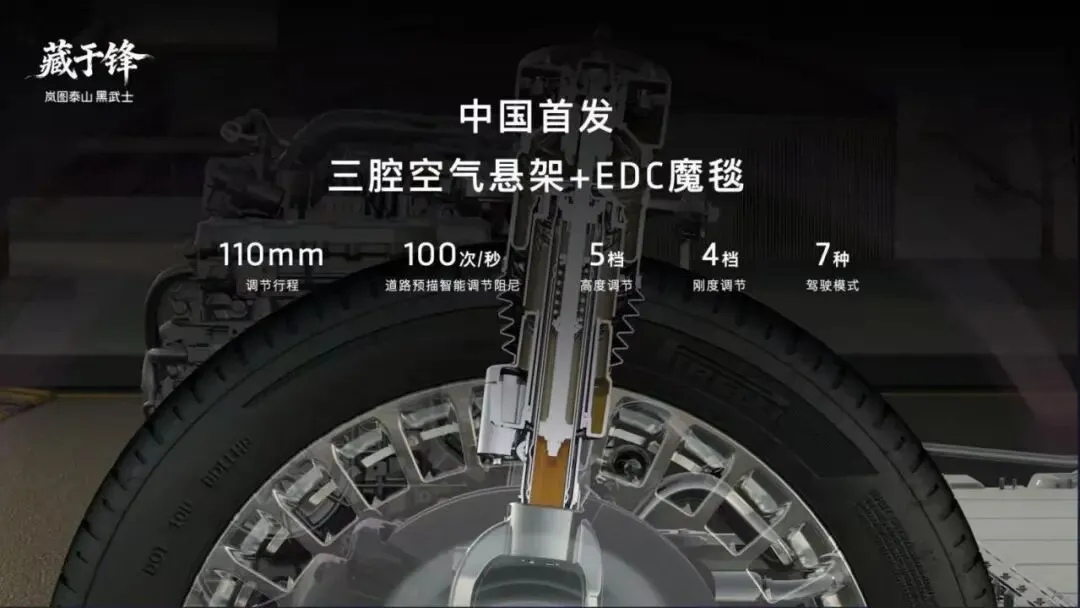 被誉为“9系旗舰SUV”集大成者的岚图泰山Ultra版,其卓越不仅体现在顶尖的智驾硬件与安全冗余,更在于行业顶级的底盘硬件与舒适性配置。底盘方面,采用前双叉臂+后五连杆结构,核心部件广泛使用航空级铝合金,兼顾了高强度与轻量化。同时,它搭载了中国市场首发的三腔空气悬架,配合EDC魔毯底盘与双向16°后轮主动转向技术,带来了百万级豪车的驾控质感。无论是窄路掉头、紧急避险还是通过复杂路面,都能展现出与其尺寸不符的灵活性、响应速度和通过性。在用户关注的续航、补能与舒适配置上,泰山Ultra版同样表现出色。其CLTC纯电续航达350公里,支持5C超充,12分钟即可补充228公里续航,满足城区纯电通勤需求;高效的油电转化率配合大容量电池,CLTC综合续航里程超过1400公里,彻底消除长途焦虑。此外,光瀑格栅灯效、倾橙内饰、智能调光玻璃、双C主动降噪技术以及AI自适应座椅等配置,为用户提供了全维度的顶级舒适体验,重塑了旗舰SUV的体验标准。侠义风骨,定义豪华新风尚