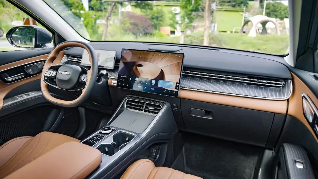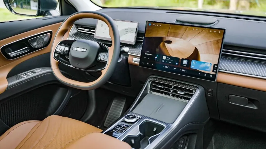 和外观对应,两款车型的内饰也各有设计。虎款用15.6英寸2.5K大横屏,视觉冲击力强,导航看地图特别爽;豹款换成竖屏布局,操作逻辑更像手机,上手快。