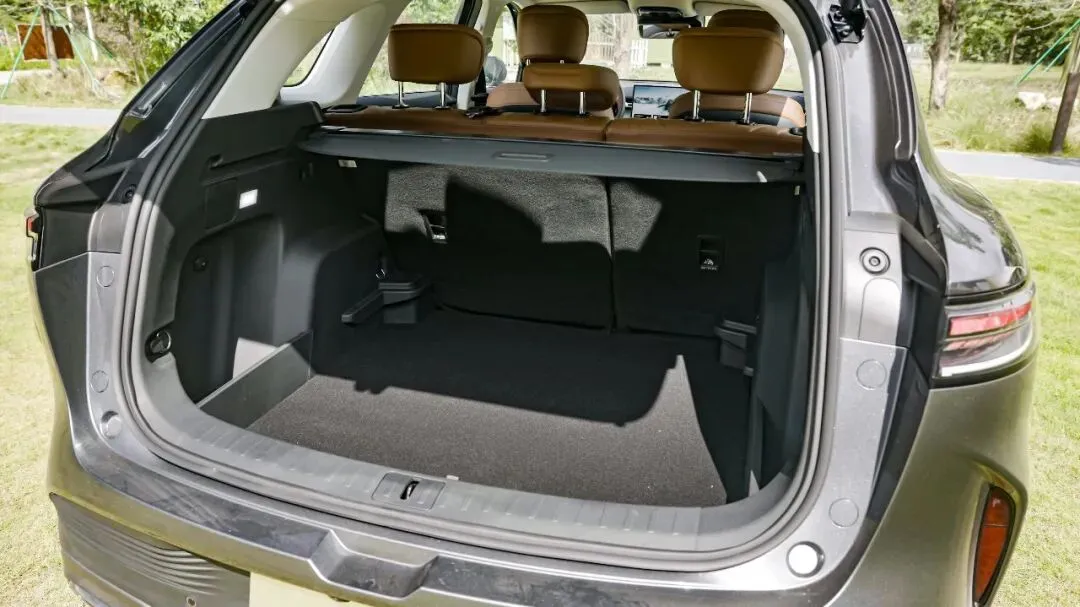 后备箱是亮点,常规容积546L,双层盖板设计太实用了。上层伸缩盖板能放隐私物品,下层可以收纳工具或者不常用的东西,下方还有非全尺寸备胎。把第二排座椅放倒,能形成近乎纯平的空间,容积直接到1453L,搬家或者放露营装备都不在话下,甚至临时当床睡都可以。