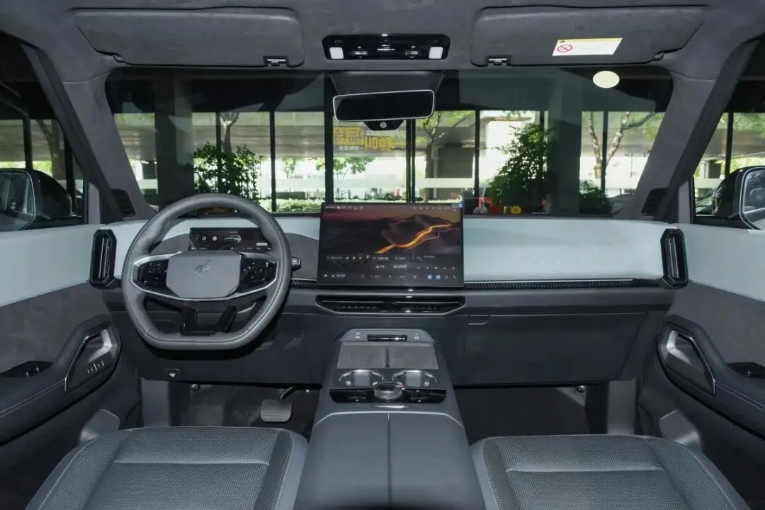 中控台采用悬浮式15.6英寸屏幕设计,下方是贯穿式的空调出风口,这种布局在当下不少新能源车上都能见到,视觉上比较清爽。屏幕材质为LED,分辨率达到2.5K,显示效果比较细腻,操作流畅度也还不错。车机系统搭载高通骁龙8255芯片,支持CarPlay手机互联,对于习惯使用手机导航的用户来说是个便利。