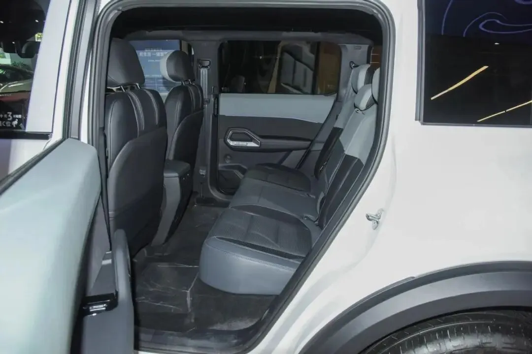 车身尺寸达到5025×1960×1825mm,轴距2950mm,这样的数据在中型SUV里属于比较宽敞的水平。前排头部空间充裕,身高180cm的乘客坐进去也不会感到压抑。后排腿部空间表现不错,座椅靠背角度可以调节,长途乘坐的舒适性有一定保障。后排还配备了隐私玻璃和出风口,对后排乘客的照顾比较到位。储物空间方面,常规状态下后备箱容积为497升,后排座椅支持比例放倒,可以进一步扩展装载能力。纯电版车型还额外配备了一个160升的前备箱,可以用来放置充电线缆或者一些不常用的物品。车内储物格数量比较丰富,门板、中央扶手箱、手套箱的容积都还算实用,日常使用基本够用。