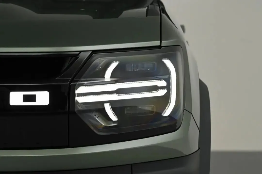 福特智趣烈马的外观设计延续了烈马家族的硬派基因,整体呈现出方盒子造型的经典轮廓。前脸部分,可点亮的"BRONCO"字母标识贯穿格栅,与数字化大灯组形成横跨前脸的动态光带,视觉辨识度比较突出。引擎盖上的贯穿式风道并非装饰性结构,而是具备实际导风功能的通道,能够有效优化空气动力学表现。车身侧面采用平直硬朗的线条,搭配悬浮式车顶设计和隐藏式门把手,在保留硬派气息的同时增添了一些时尚感。轮眉采用防护设计,底部大量低光泽度防护材质可应对越野场景下的树枝、飞石冲击。车尾部分,外挂式备胎、侧开式尾门及竖向尾灯组构成了极具辨识度的视觉标识,备胎支架采用轻量化铝合金材质。新车提供烈焰橙、岩崖灰、旷野绿、雪峰白、火山黑、喀纳斯蓝共6种车身配色方案,涵盖了沉稳、活力、自然等多种风格取向。