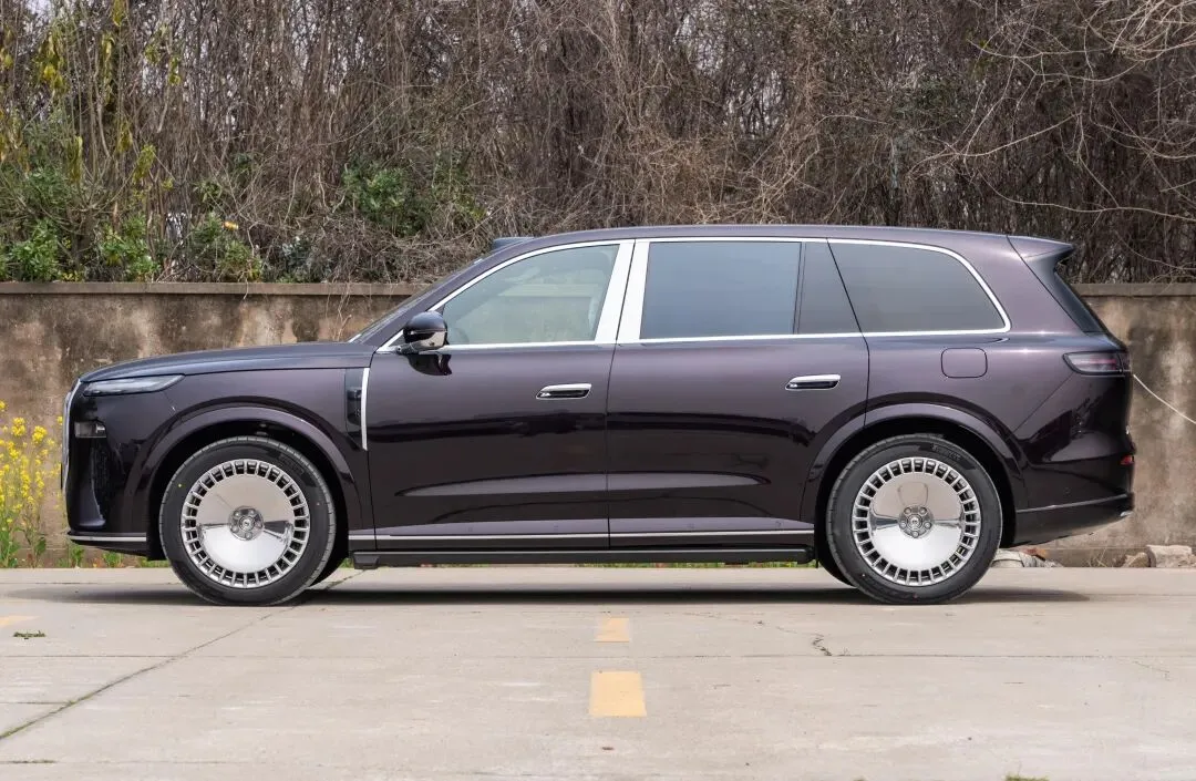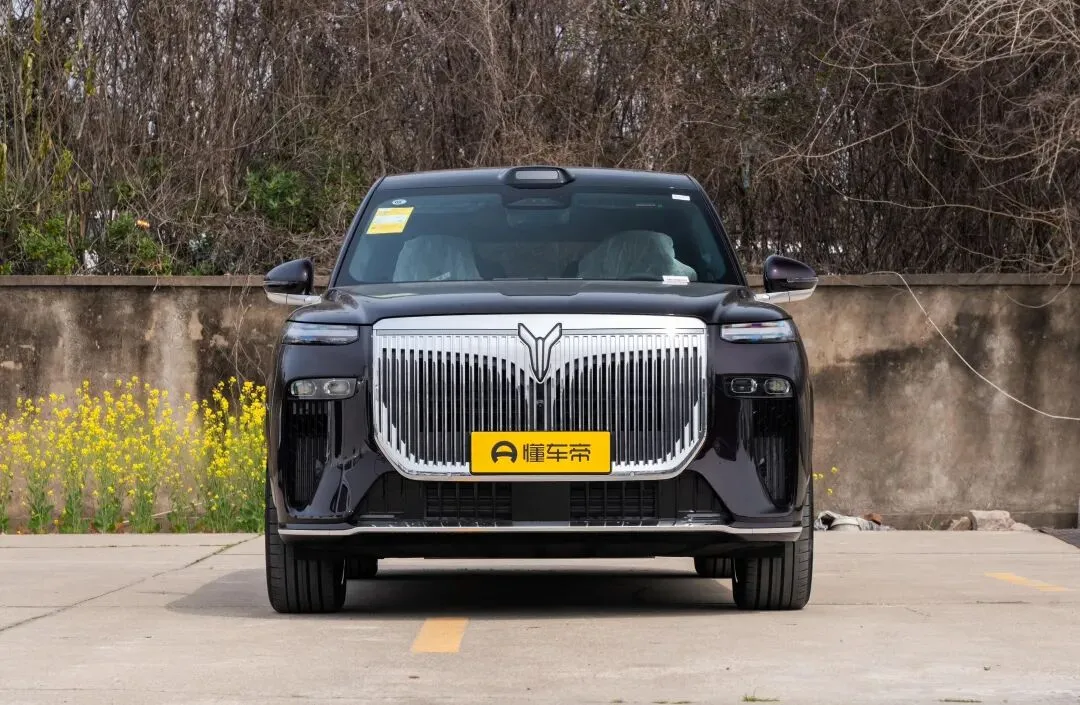 全车黑得特别老实,轮圈、门把手、格栅、后视镜壳,连激光雷达罩子都是哑光黑。不是为了显酷,是怕反光干扰雷达识别。前脸灯组分上下两段,上面细长灯带只负责日间行车,主照明全压在下面一条窄长灯条里,位置低、角度正,不挡前面那颗主激光雷达的视线。底盘前后都有导流槽,尤其是后包围中间那道深凹槽,看着像装饰,其实是为了高速过弯时稳住后轴气流——毕竟空悬+后轮转向的结构,图纸上早预留好了。