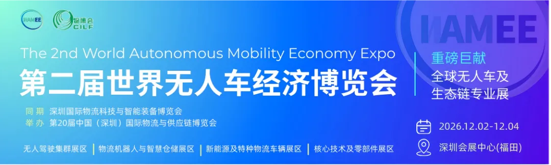 2026年12月2-4日,第二届世界无人车经济博览会将于深圳会展中心(福田)举行,携手第20届中国(深圳)国际物流与供应链博览会,共同打造无人车产业链生态的展示与交流平台。