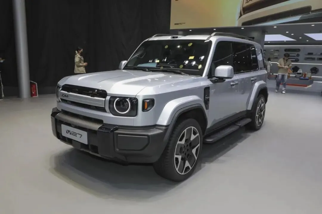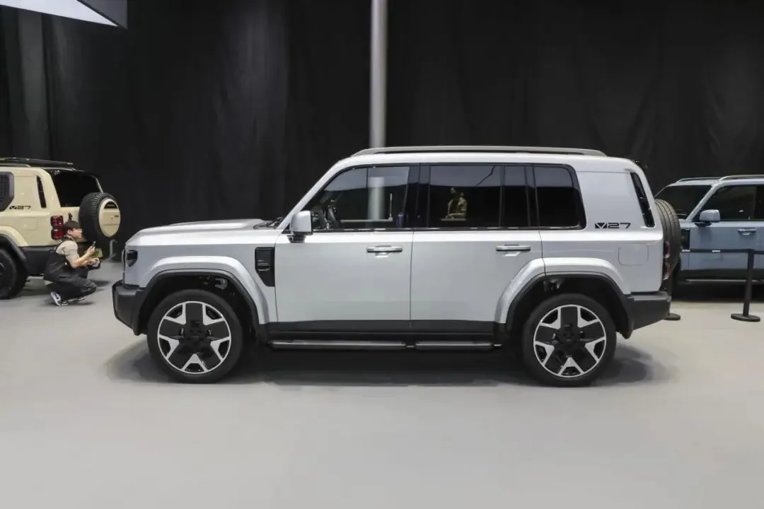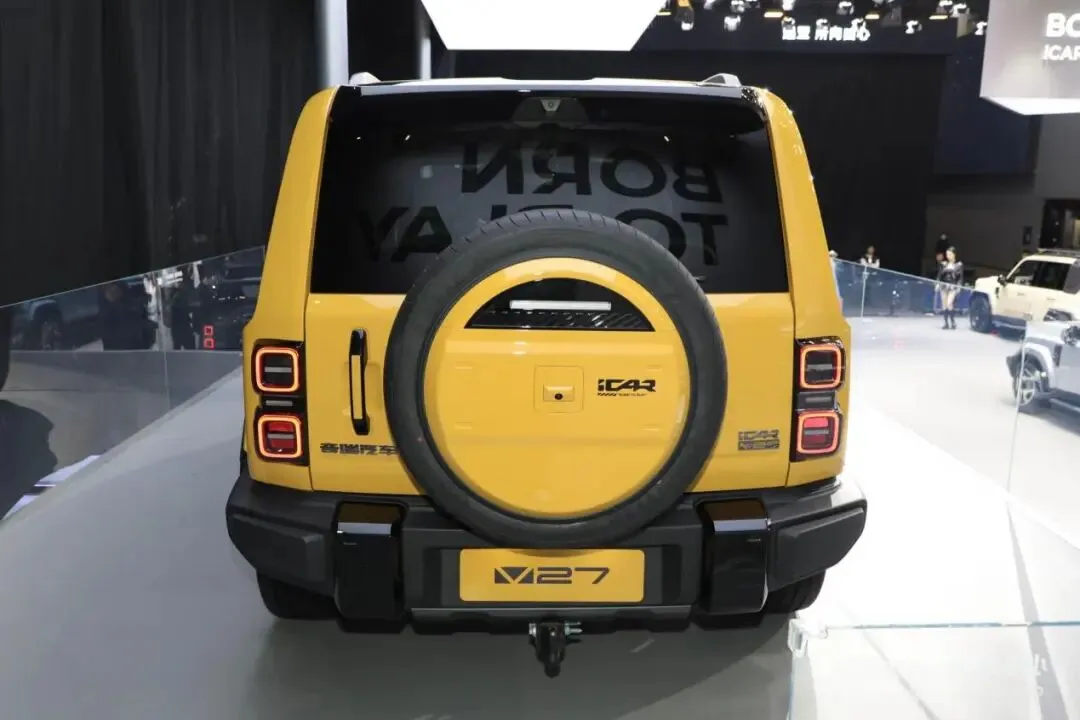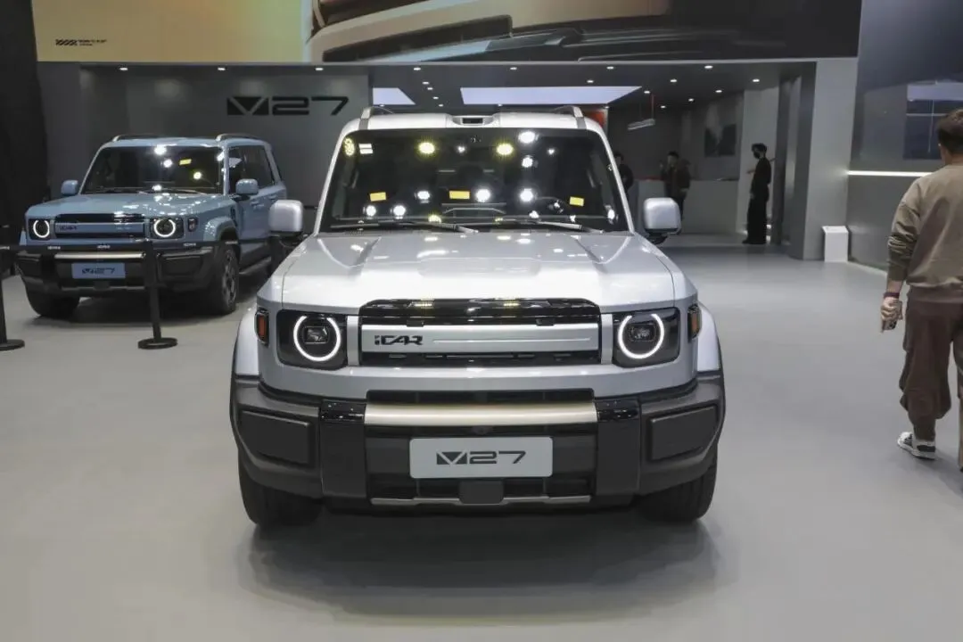 ICARV27的定位和方程豹钛7 是一样的,方盒子城市SUV,主打的就是硬朗的外观设计,车身尺寸方面车长 5055,宽度 1976,高度 1894,轴距 2910 毫米。方程豹钛 7 车长 4999,宽度 1995,高度 1865,轴距2920mm。两款车在尺寸方面很接近了。