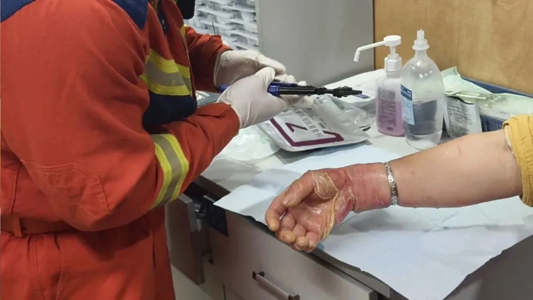 右手被严重烫伤,已经肿胀