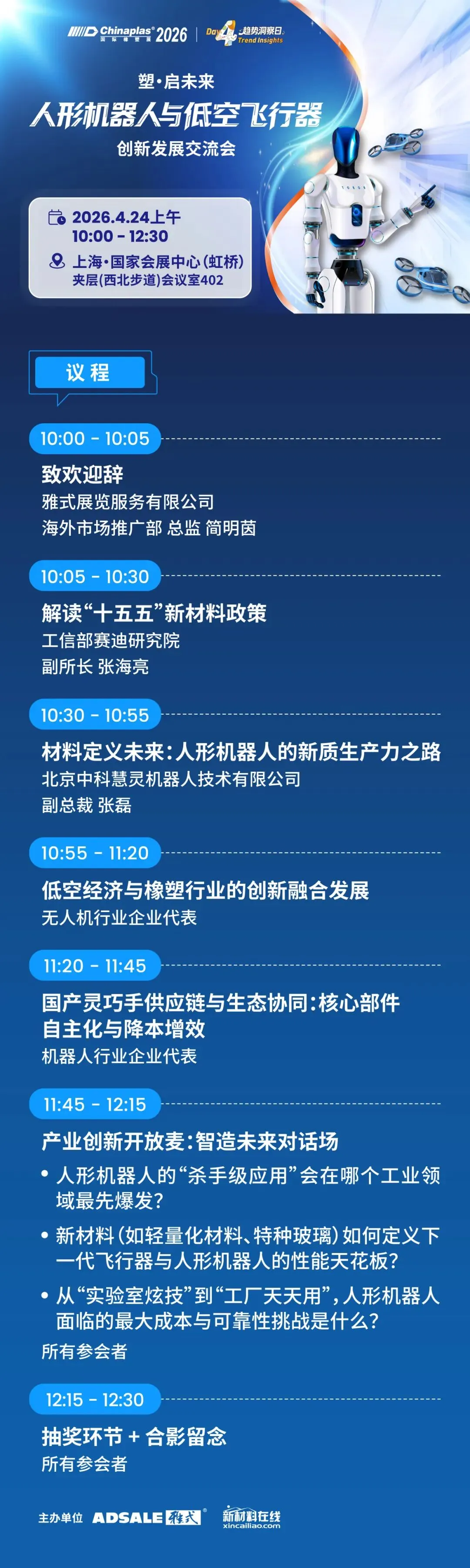 CHINAPLAS 2026 国际橡塑展推出「科创・产学研行」活动,携手上海塑料行业协会及上海交大、华东理工、东华大学三大顶尖高校,搭建校企融合桥梁。
