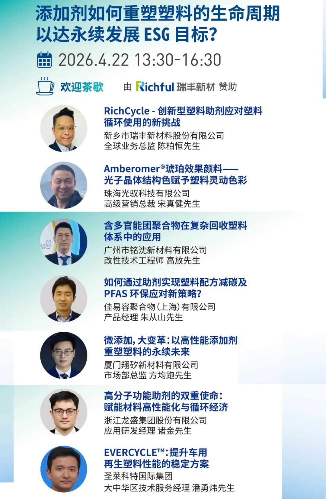 在绿色转型与安全升级的趋势下,添加剂已成为塑料行业创新的关键。展会第二及第三天,将举办“添加剂研讨会:成就可持续及优质塑料”,聚焦高附加值与可持续塑料解决方案。